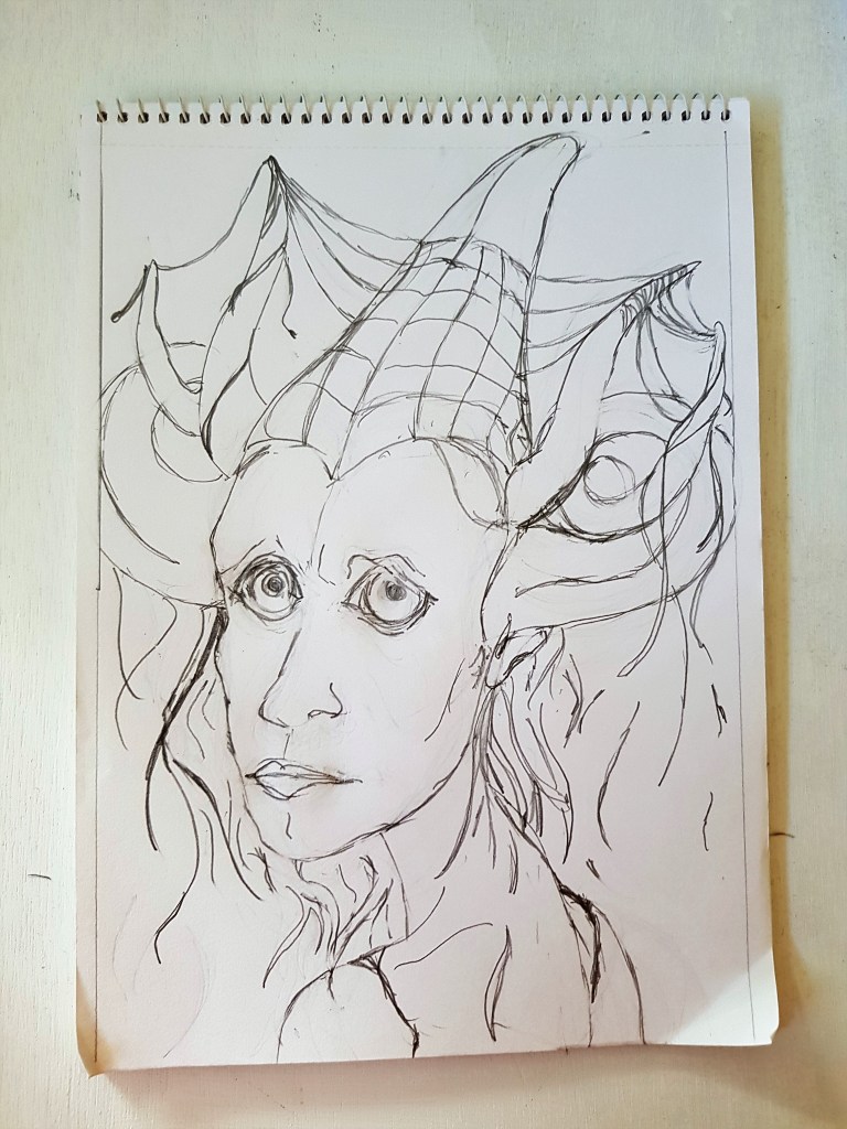 I’m hoping I can keep the look once I redraw her face but I’m never very successful at replicating my drawings.