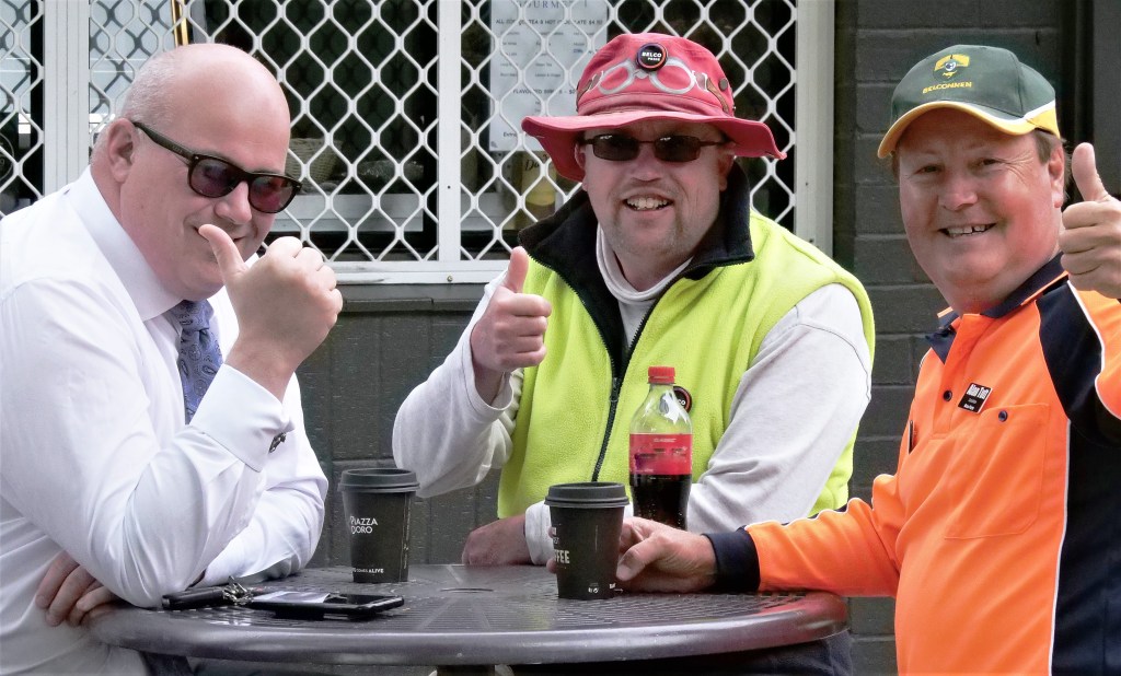 I came across one of the candidates, Alan Tutt (far right – position in the photo, not politics that is) from the newly formed Belco Party, catching his breath at my local shops.
