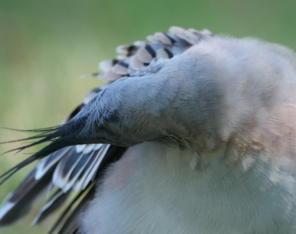I fell in love with a little Crested Pigeon the other day. It is no wonder people want to take close-up photos of feathers. In the photo below, I was struck by how the preening bird looked like a luxurious blanket. The ‘button’ to the right of the photo is the bird’s eye. The bird was as close to me as it could get without freaking out my poor telephoto lens. The photo is rather dark because the bird had just moved into full shade and my F-stop was a little high/low. Anyway, the number was high (F13) and shutter speed (1/800) just high enough to keep the moving bird in focus. Anyway, you are probably all bored with the photo lingo by now, so here is a little poem.