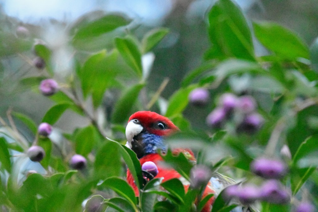 Since you have been such good readers in getting this far, here’s one more treat – crimson rosella in lillipilli.*