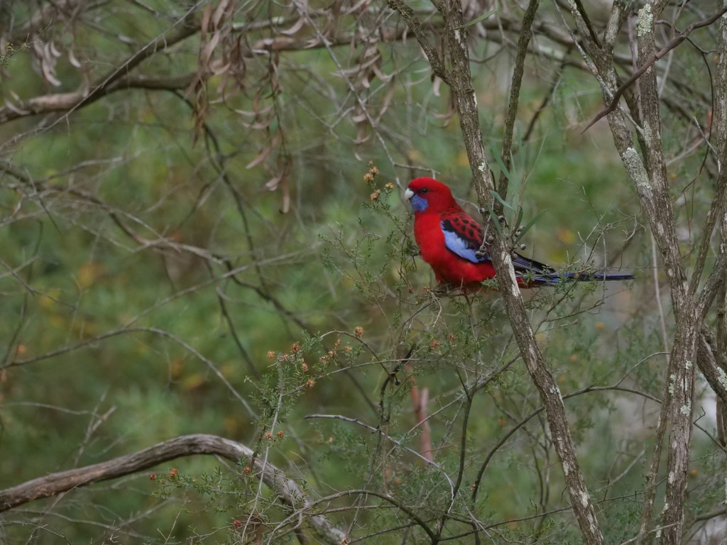 Thanks, Donna. The Crimson Rosellas are regular visitors to our botanic gardens. We are so lucky to have both. We have had quite a bit of rain since last year’s drought broke, hence the abundant green. That is unlikely to continue.
