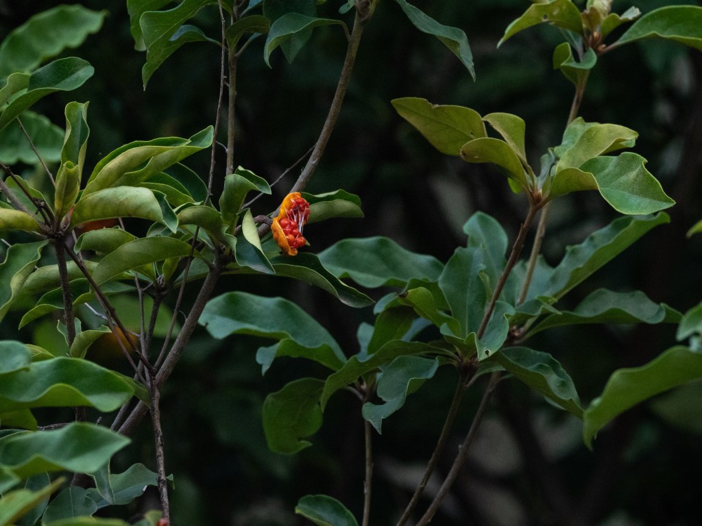 I am in awe of a couple who go walking in all weather with their new baby, a toddler and their dog. If they can do it … My True Love and I dragged our carcasses out on a cold, grey, windy day to the Australian National Botanic Gardens (ANBG). We hoped it would be relatively protected there from the bitter wind. It was. We had to work hard for the photos in the dim light and gallery of blanketing green. Let me get all poetic here.