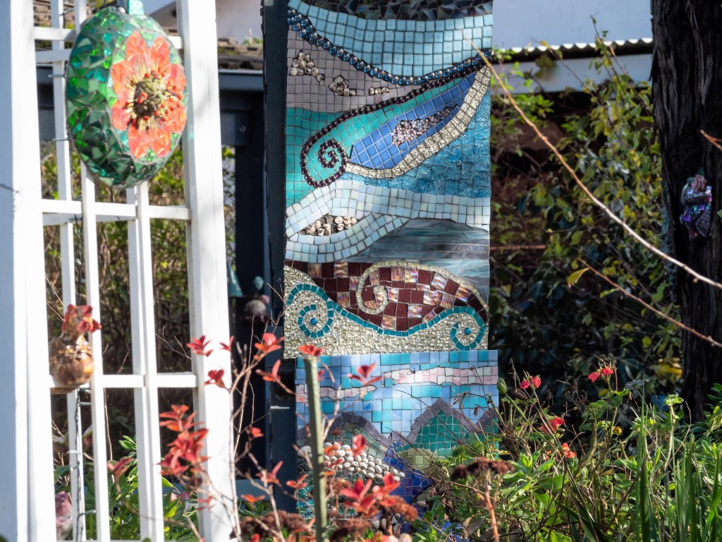 I was so inspired that I got off my backside and went for a long walk. When I was out, I saw a garden full of mosaic garden art and sculpture. In my own suburb! It was fantastic. Check it out.