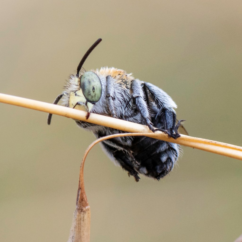 Since I complained about the Blue-Banded Bee nipping me between my toes, my TL has been stalking these little creatures to get a nice close-up of their mandibles. Check ’em out. In the overall scheme of life, they are very small mandibles, built for respite and cause no lasting harm.