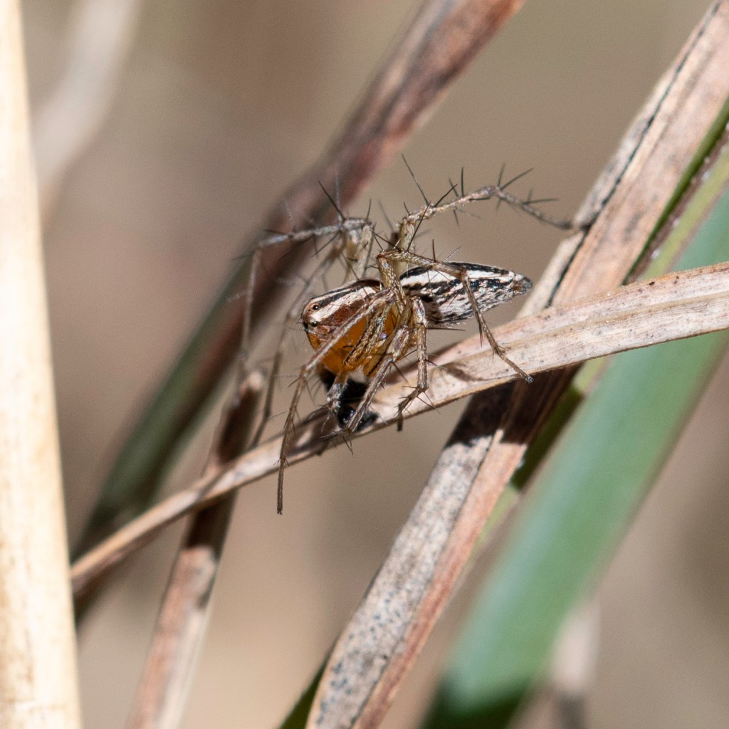Dear Readers, please excuse this fooling around with photos. Apparently the colour management of my various photo editing software programs in relation to different browsers and various other confusing stuff is confusing. So I am experimenting. Blimey, as they say in the classics. Just ignore me. Or you could tell me whether the spider looks orange, brown and cream? Anyway, just in case you are interested, we think this is a some type of lynx spider. Have to get the colours right so we can ID it. Long story.