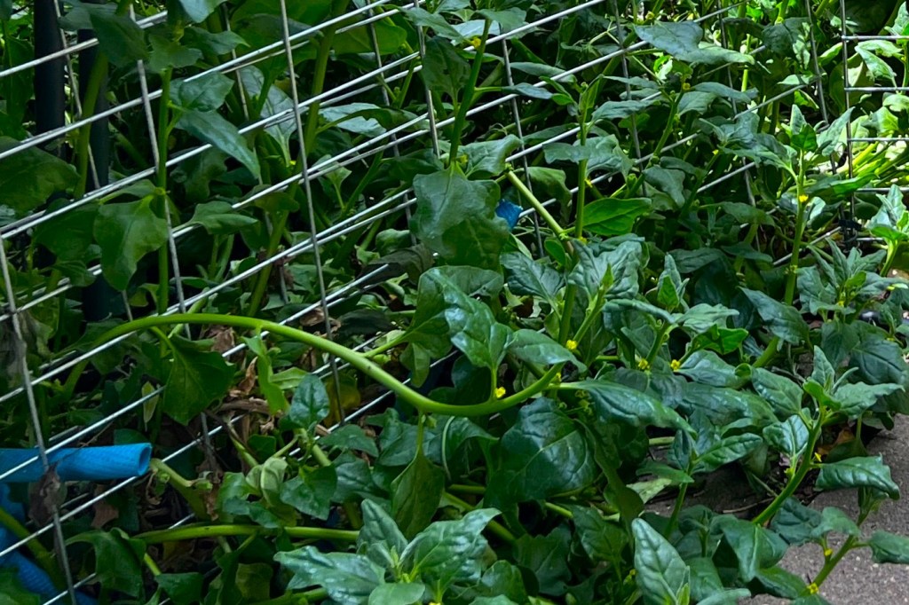 Finally, a photo from today’s visit to my son’s house. This was the first day that all three dogs had visited him at the same time. They had fun and Ama tried to eat a lot of sticky weed. That, and the fake grass, has gotta go. I suspect there will also be some other modifications to make it more of a haven for small woodland birds. All in good time.