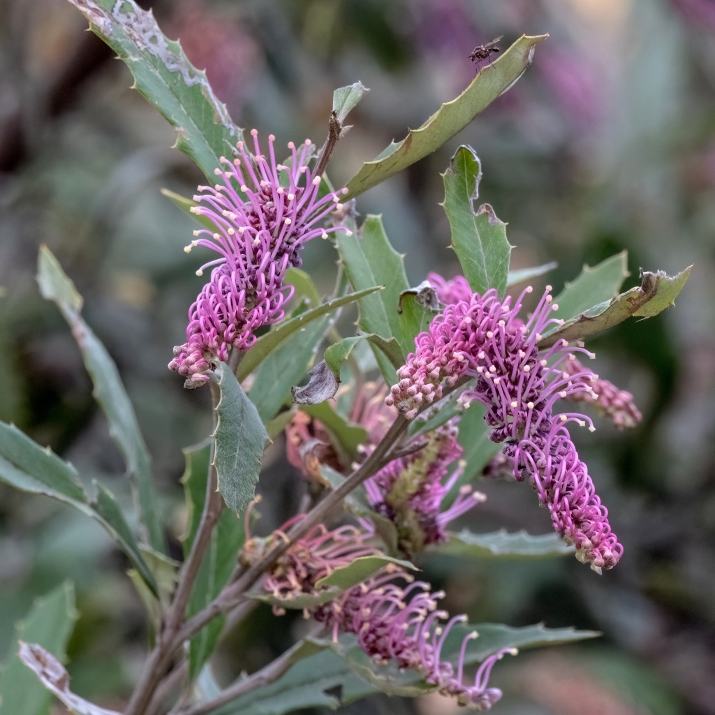 I think the plant in the next photo is Hardenbergia violacae. It was so lovely and delicate, glinting red where the sun fell on the twining stems. We saw many plants in bud, so if you happen to be in Canberra (Australia) over the next month, the floral displays at the ANBG are sure to be even more spectacular and well worth a visit. A tip – I much prefer the somewhat dishevelled, natural gardens up the hill rather than the more manicured, curated gardens that are on the lower levels.